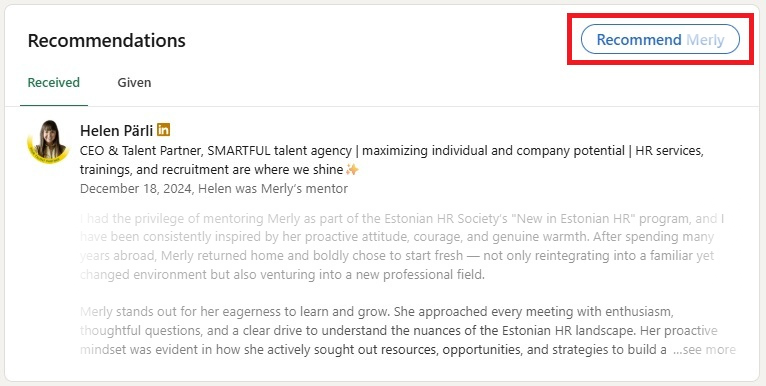 💡 Nipp: Kui kirjutad kellelegi teisele recommendationi, saad suure tõenäosusega ka ise vastutasuks soovituse.