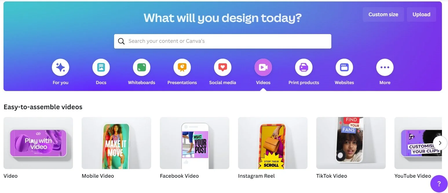 🎞️ Another great way is using Canva.com. It’s known for making visuals for your posts — pictures mainly. But you can also use it to create videos.