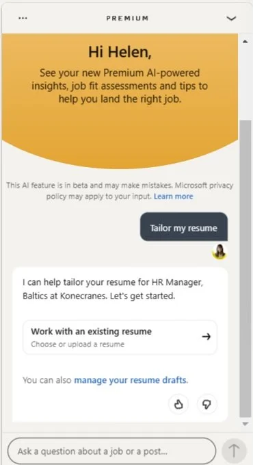 You can use it to tailor your resume or simply ask the AI tool to analyze your fit for the role based on your LinkedIn profile.