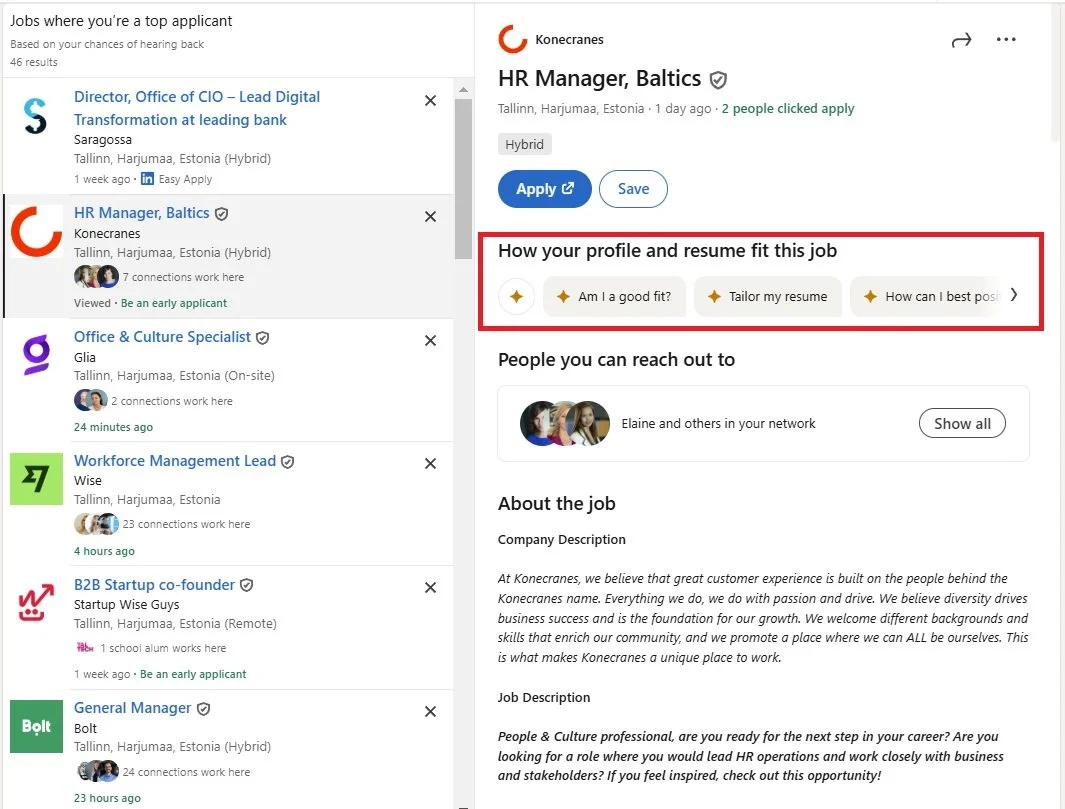 There is an update in LinkedIn jobs that is AI powered and helps you to analyze your fit for the role and tailor your resume for a specific job offer.