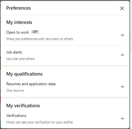 When opening the “Jobs” menu, you can also easily turn on #opentowork and manage who is able to see that. You should find this in the middle of the page when scrolling down a bit.